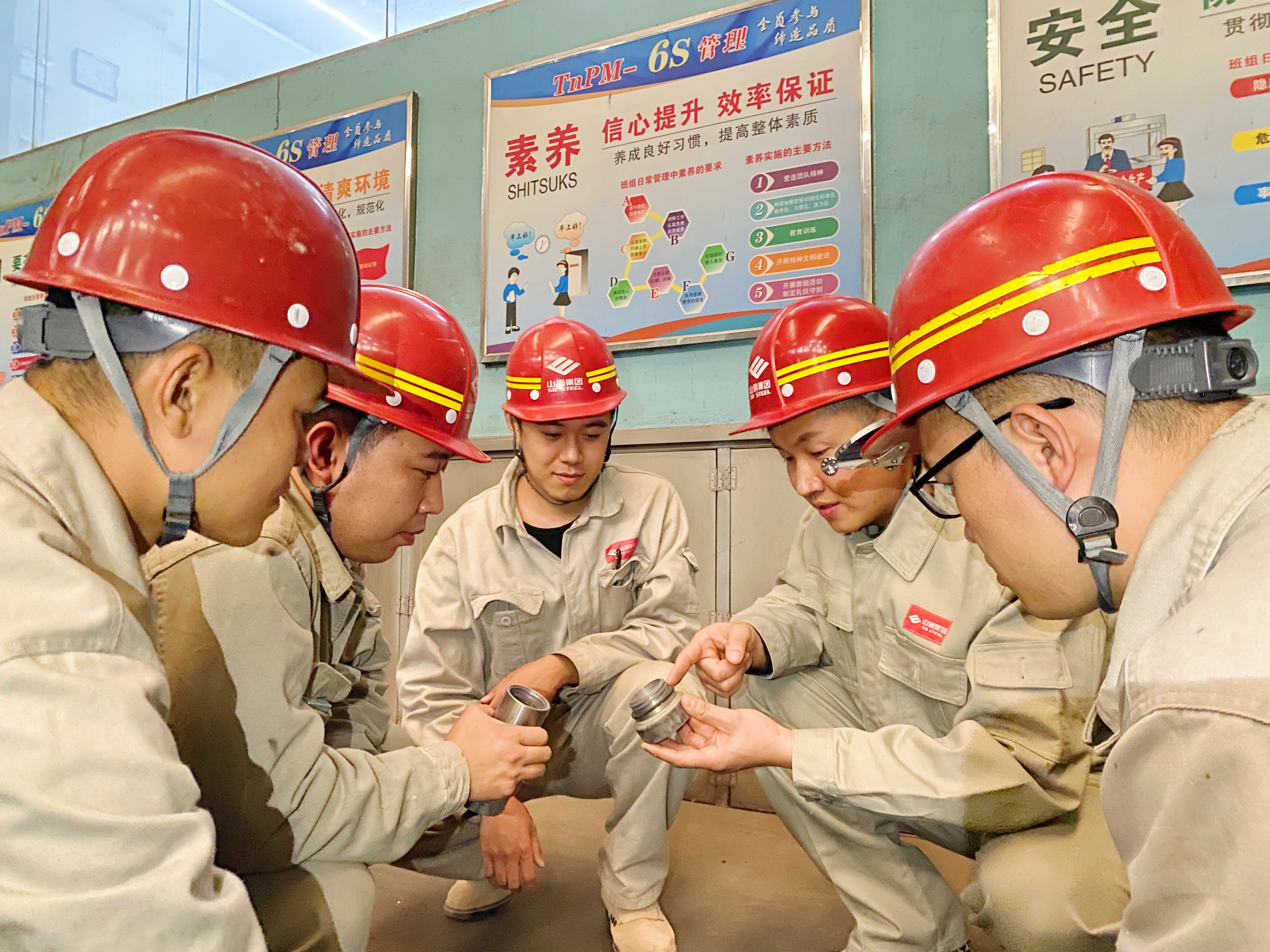 今年以来,山钢股份莱芜分公司特钢事业部紧紧围绕生产经营中心任务和改革发展重点工作,从企业“强”起来的战略定位和职工队伍“活”起来的管理目标出发,系统谋划全员创新改善工作的推进路径,持续提升干部职工岗位创新创效的积极主动性。图为该单位职工围绕“延长风动送样料盒使用寿命”全员创新改善项目,正在进行小组攻关研讨。(郭 城 摄)