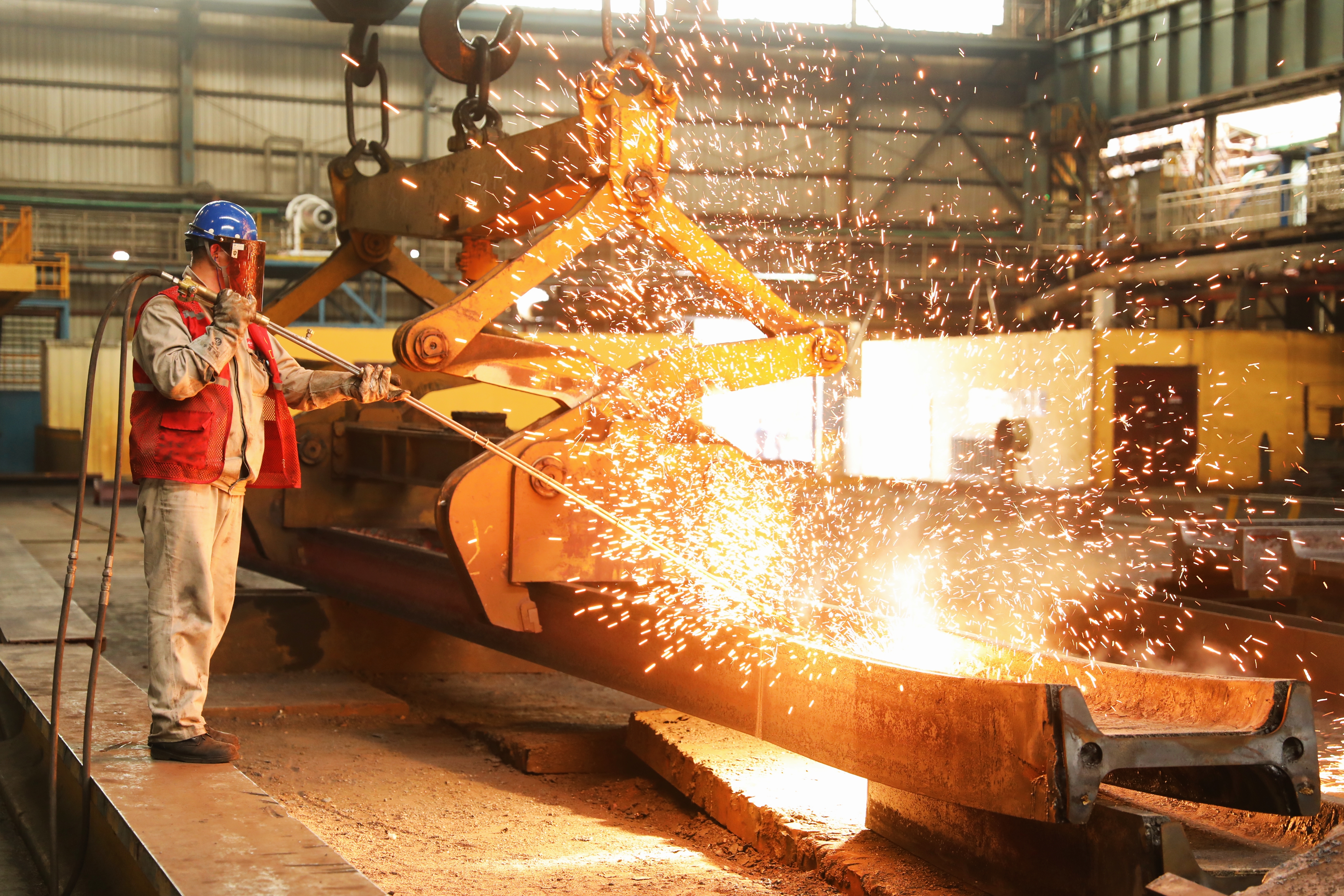 新年伊始,山钢股份莱芜分公司炼钢厂各岗位职工精神抖擞、干劲倍增,立足岗位精益求精、精准操作,以更强更优的智慧炼钢技术、更多更好的高端产品助力企业“争上游、走在前”。图为该厂职工正在对下线的连铸坯进行精整处理。(丁书洪 摄)