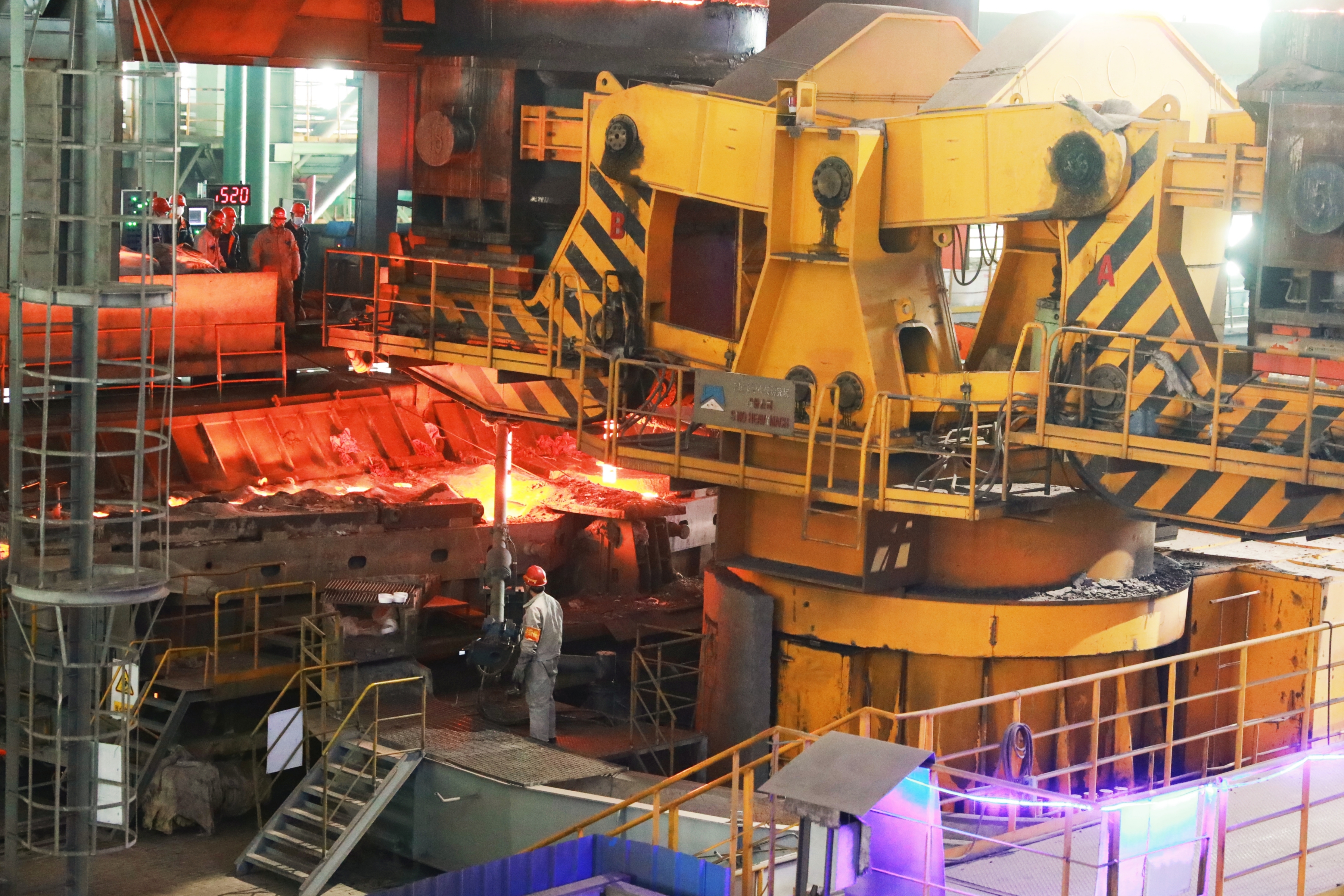 山钢股份莱芜分公司炼钢厂紧紧抓住宝钢股份协同支撑山钢莱芜的契机,遵循“高端化、智能化、绿色化、高效化”的发展方向,通过深度对标、专家诊断等措施,进一步补齐短板、强化优势、提升竞争力,为企业实现“扭亏增盈、归母为正”根本目标贡献力量。图为该厂新动区职工正在精心组织连铸机钢水包开浇操作。(丁书洪 摄)