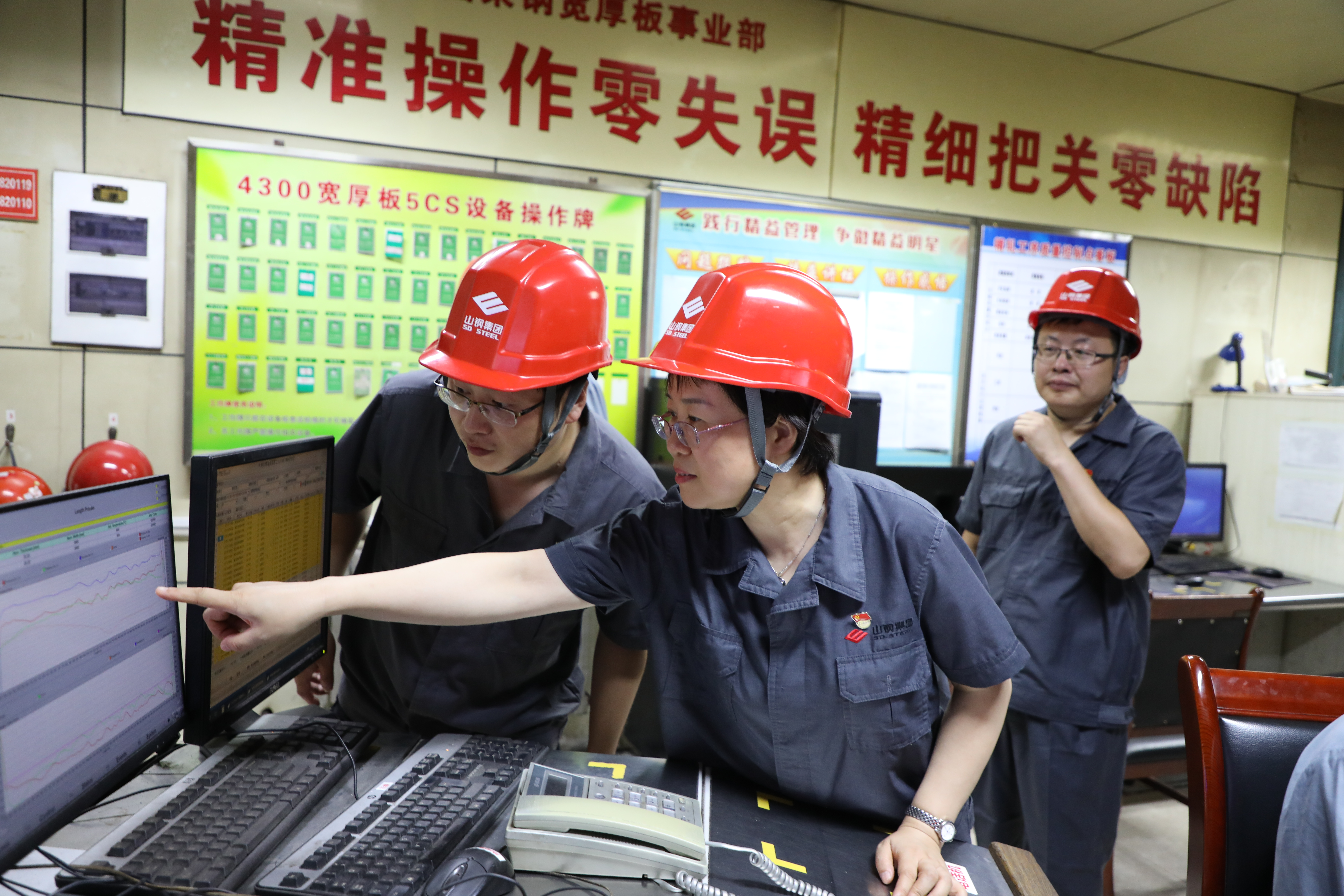 山钢研究院智能剪切研发项目团队在山钢股份宽厚板产线进行系统上线测试。(刘晓涵 摄)
