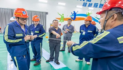7月29日,日照公司第六届职工职业技能竞赛暨青工技术比武拉开帷幕,此次竞赛设置7个一级竞赛工种及10余个二级竞赛工种,其中班组长综合技能、AI+钢铁制造场景设计应用等3个竞赛工种系日照公司首次举办。赛事将持续3个月,3000余名职工同台竞技。图为班组长团队领导力比赛现场。 (郭 阳)