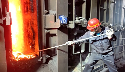 山钢股份炼铁厂加强职工技能培训,定期开展标准化作业、故障排查处理等比武练兵活动,提升职工技能水平,为安全生产奠定坚实基础。图为该厂职工正在进行出炉操作。 (张 波 李海涛)